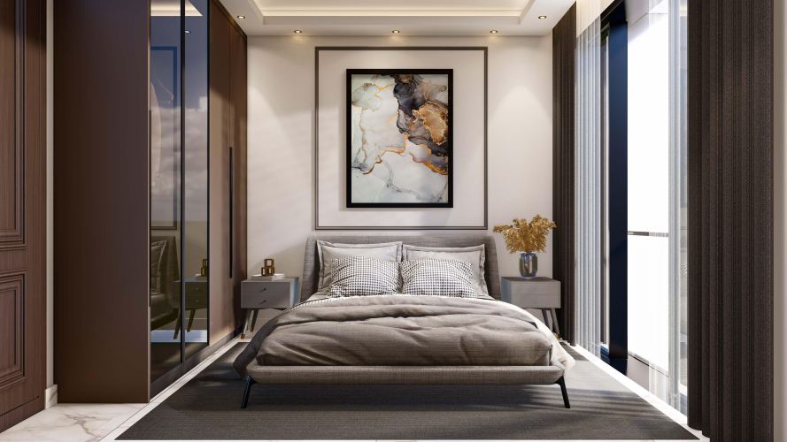 Просторная гостиная приветствует вас своим стильным дизайном. Здесь вы найдете удобный диван на 4 места, телевизор и телевизионный стол. Кофейный столик станет идеальным местом для встреч с друзьями или расслабления после долгого дня. Один из кондиционеров обеспечит комфортную температуру в помещении. А уютная спальня с двуспальной кроватью, комплектом постельного белья и комодом создаст идеальную обстановку для отдыха и хорошего сна. Лампа на тумбочке добавит приятную атмосферу, а жалюзи на окнах позволят вам регулировать освещение и приватность.